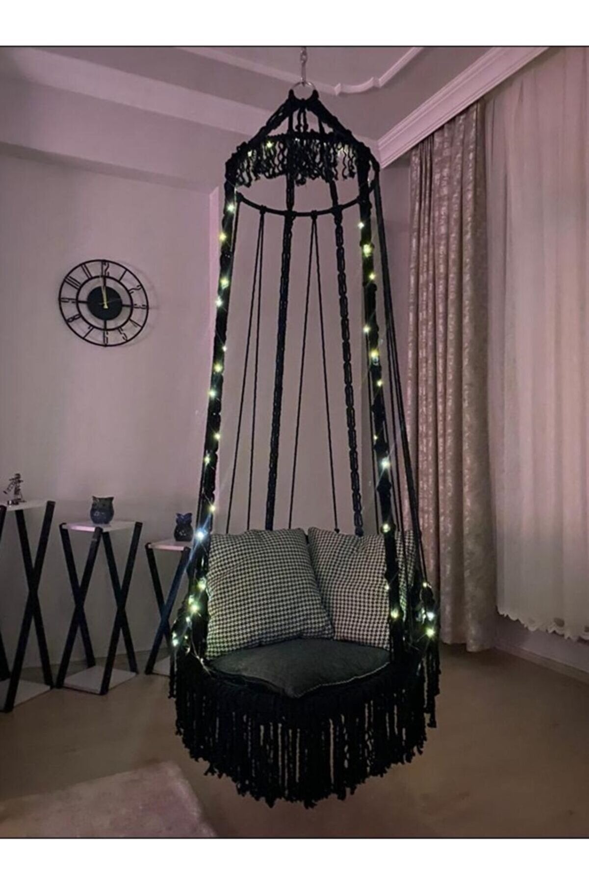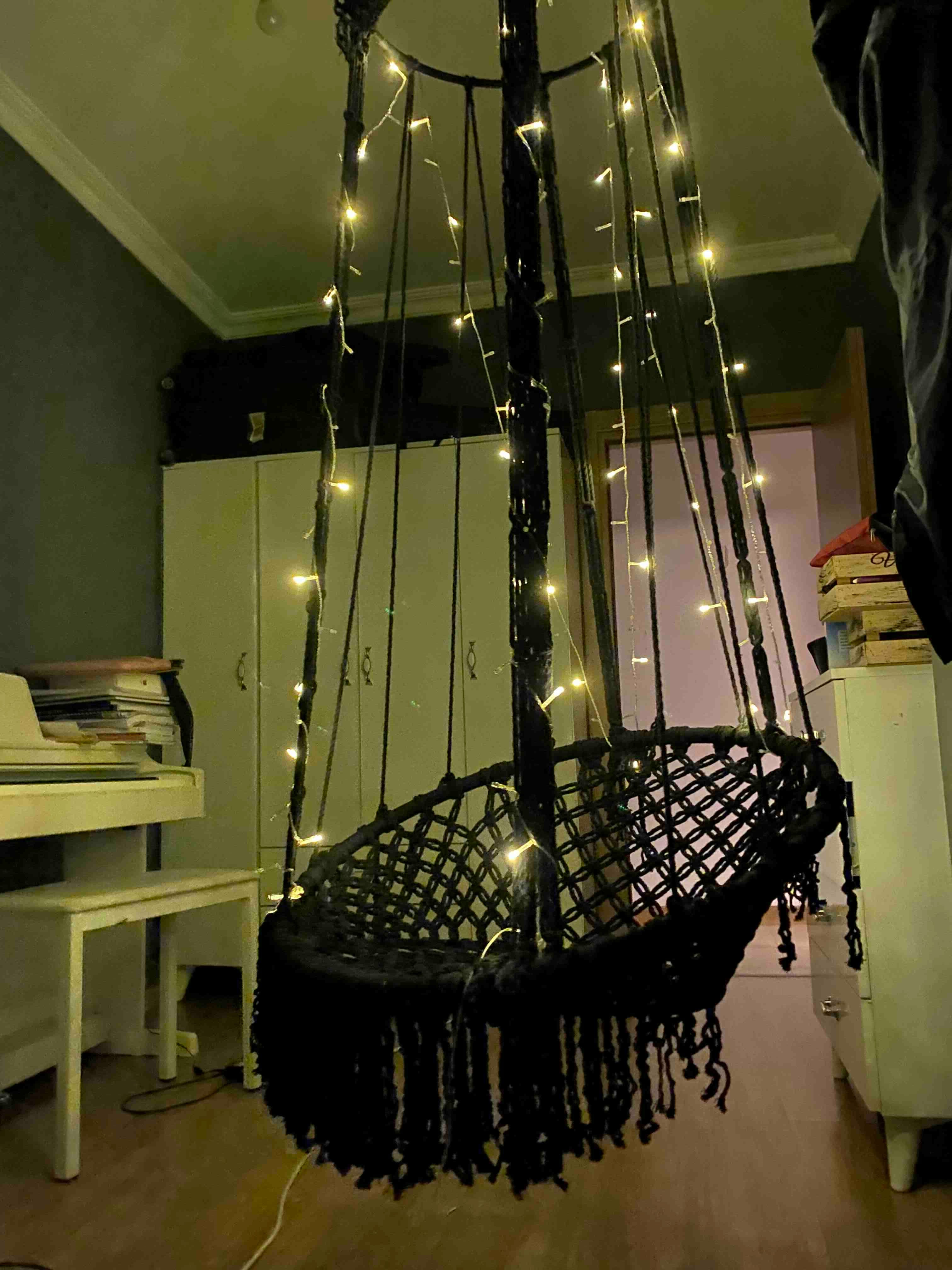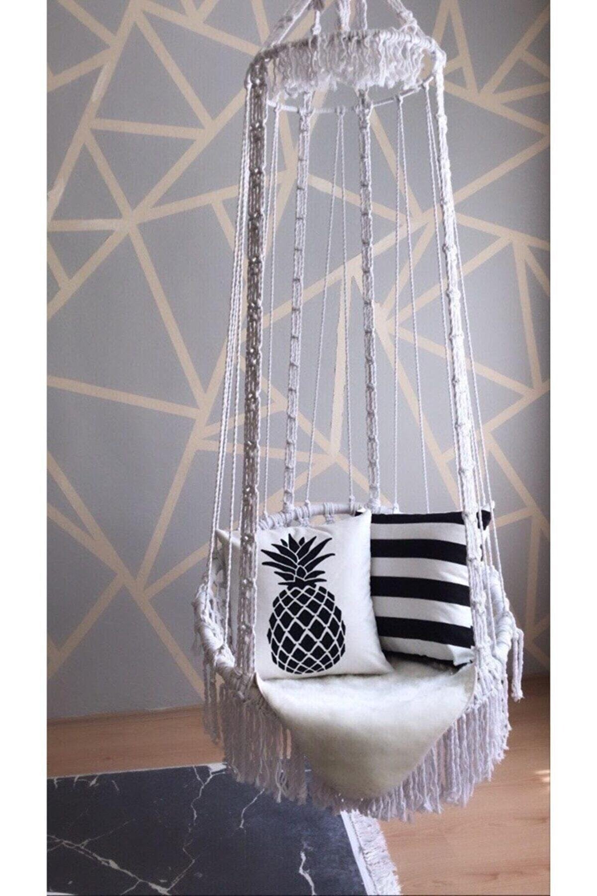 Our swing is knitted from the thick cotton rope with macrame knitting. Adults and children can use it easily. It is a 100% original product. It is 100% hand-knit. 100% cotton thread is used. Its dimensions are suitable for use on the balcony or in your garden at home. The ropes are strong and durable, you can use them for many years. Don't yawn.