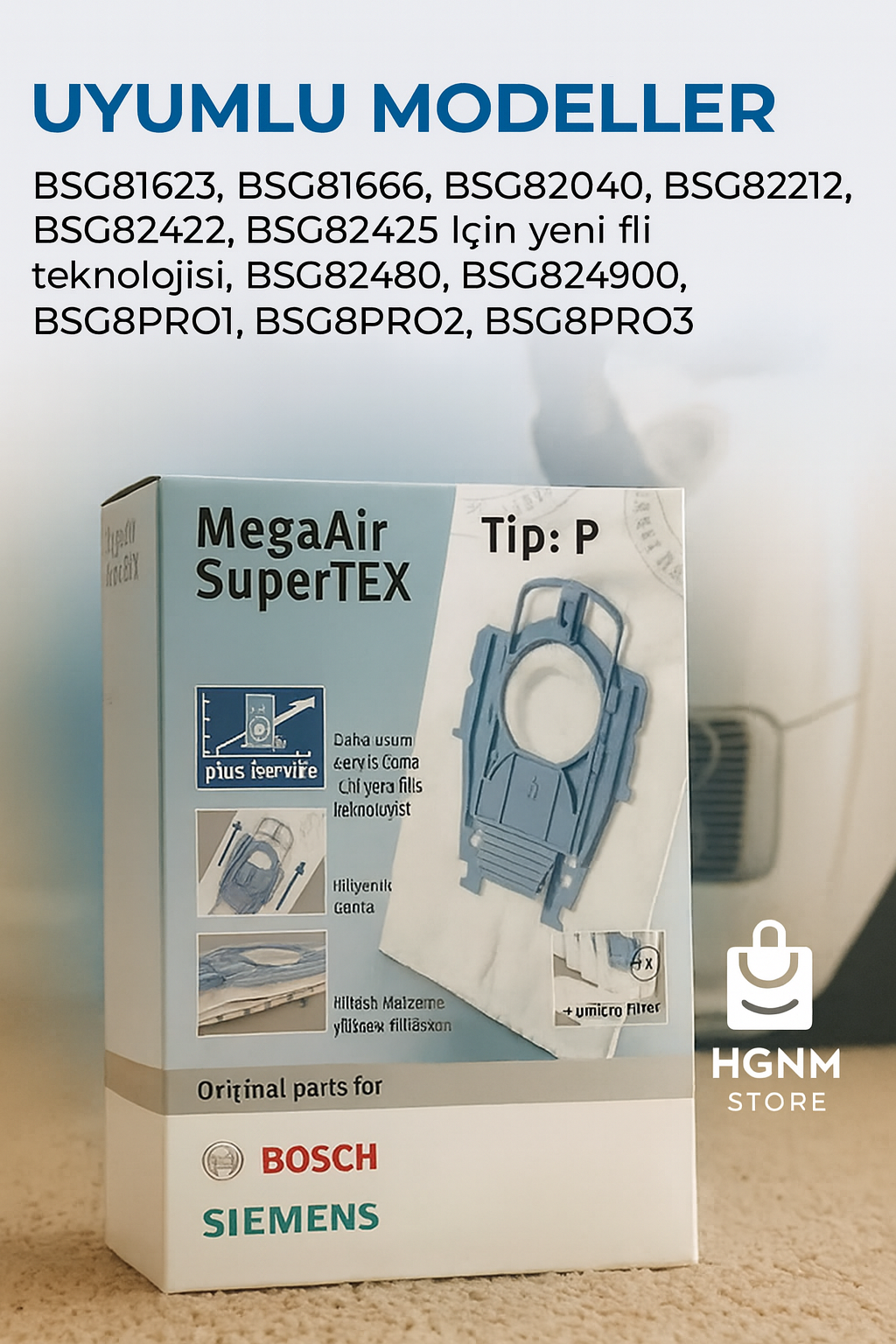 4 Adet Toz Torbası + 1 Adet Mikro Hijyen Filtresi Içerir