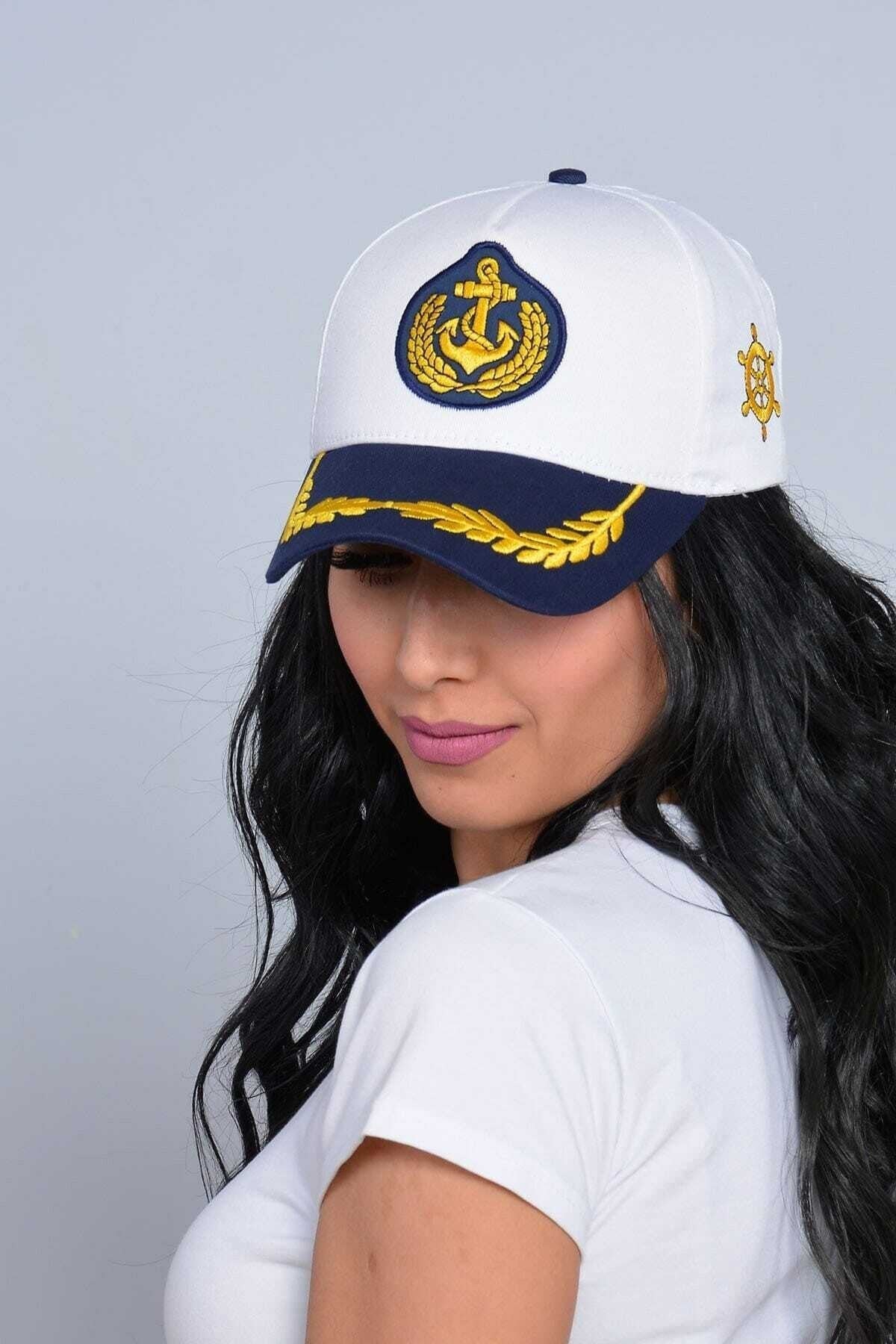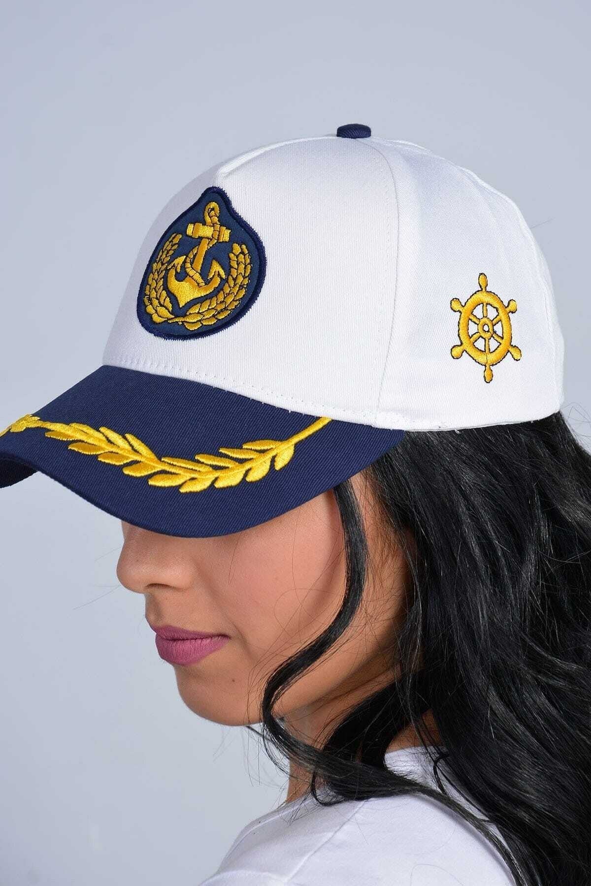 Matrosenmütze Unisex Weiß Marineblau Verstellbare Matrosen Kapitänsmütze mit Ruderanker Fedoramütze