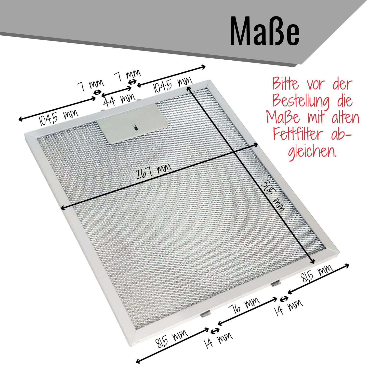 2x Metallfettfilter für Dunstabzugshaube 305x267mm Filtergitter für AEG, Electrolux, 405525042-9, 4055250429, Elica, GRI0009219A, KIT0010805, 93952919, Whirlpool, Bauknecht, 480122102168, C00314158, ARI314 158