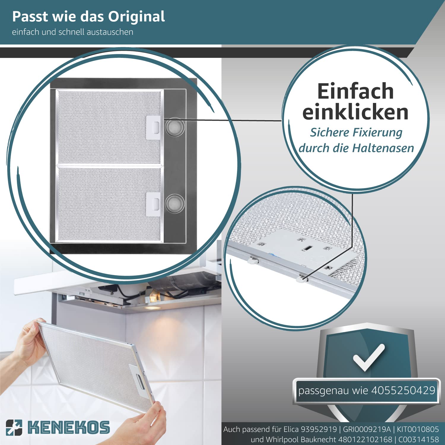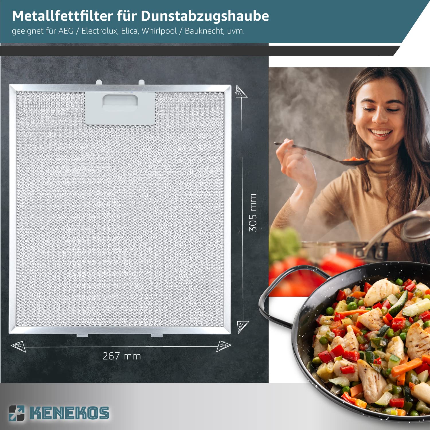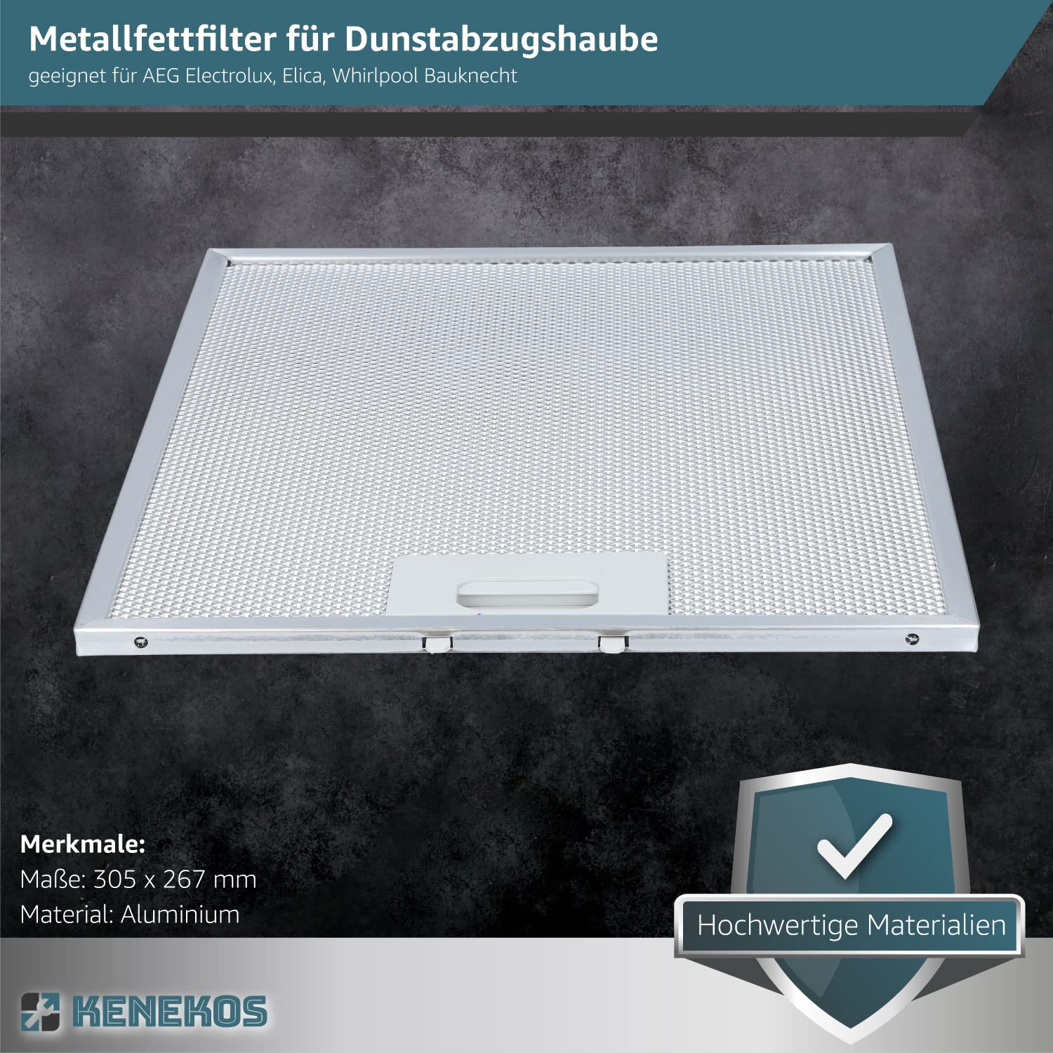 2x Metallfettfilter für Dunstabzugshaube 305 x 267 mm geeignet für AEG 405525042-9 4055250429, Elica 93952919 GRI0009219A, KIT0010805 Whirlpool C00314158 ARI314158