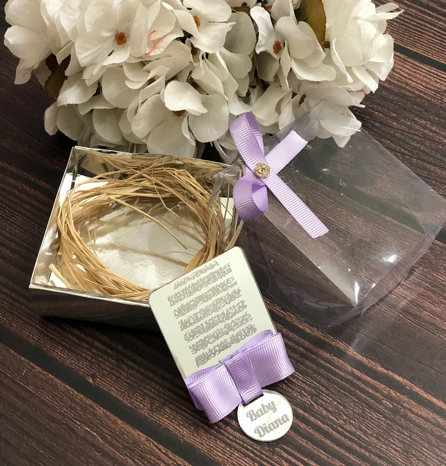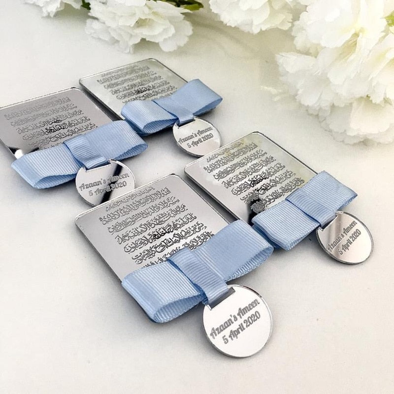 Ob Sie nach dem perfekten Hochzeitsgeschenk, einem besonderen Mitbringsel für eine Babyparty oder einem Gastgeschenk für Ihre Gäste bei einer islamischen Veranstaltung suchen, Ayatul-Kursi-Rahmen sind der Inbegriff von Eleganz und Aufmerksamkeit. Diese wunderschönen Spiegelrahmen aus Plexiglas, geschmückt mit Ayatul-Kursi, auch bekannt als Thronvers aus dem Heiligen Koran, sind ein zeitloses Andenken. Der Charme liegt in ihrer Anpassungsfähigkeit und Personalisierung, die verschiedenen Anlässen und Vorlieben gerecht wird.