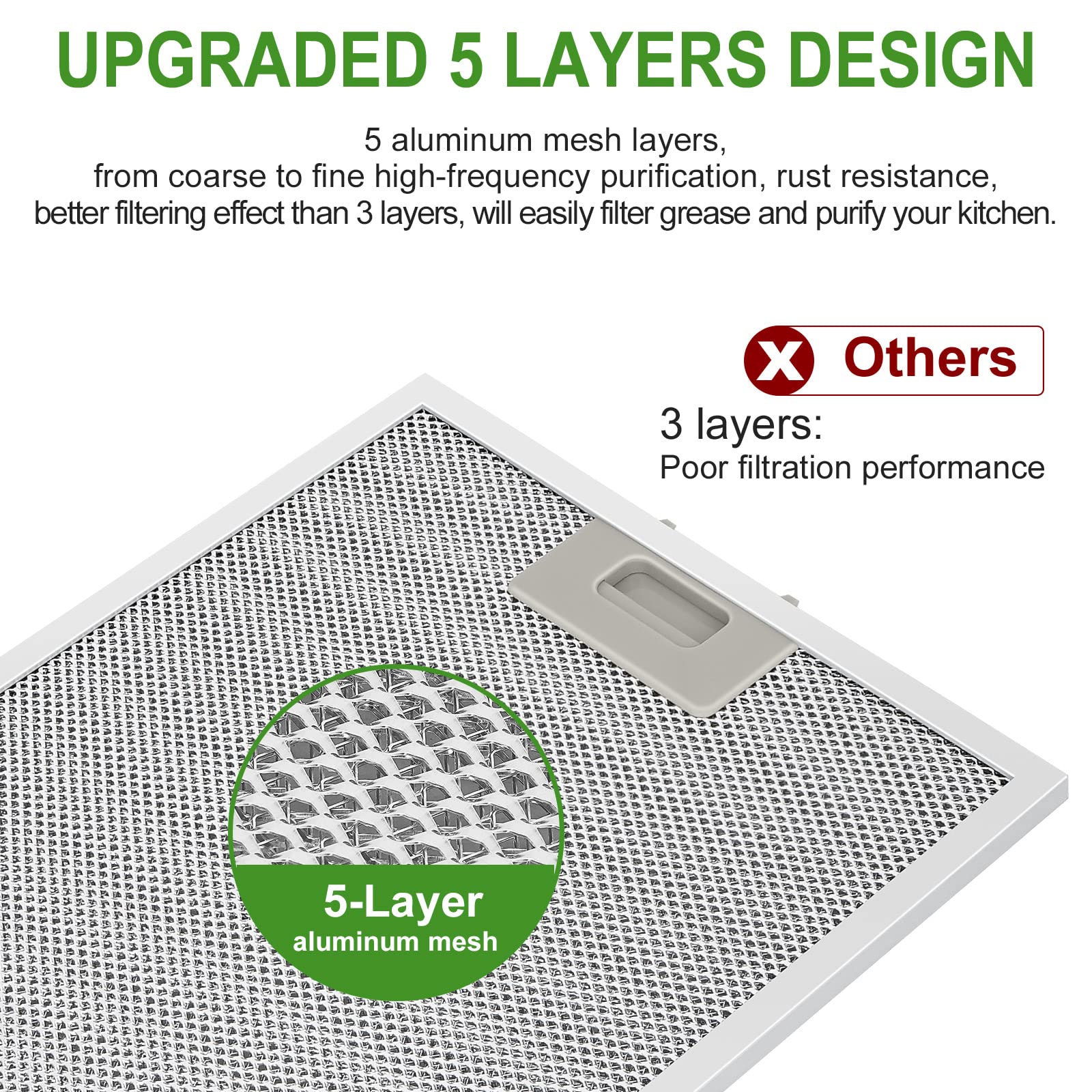 3. 5 aluminum mesh layers design, better filtering effect than 3 layers