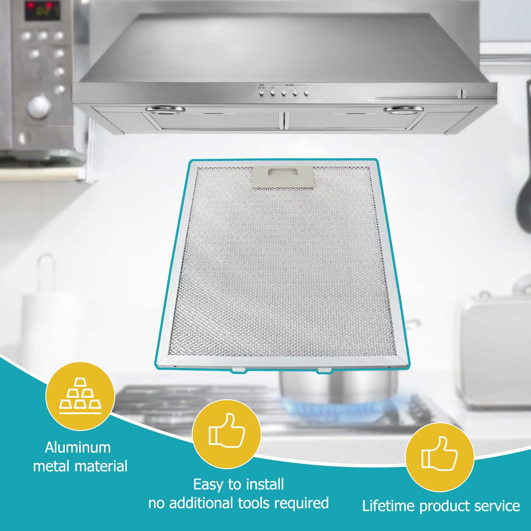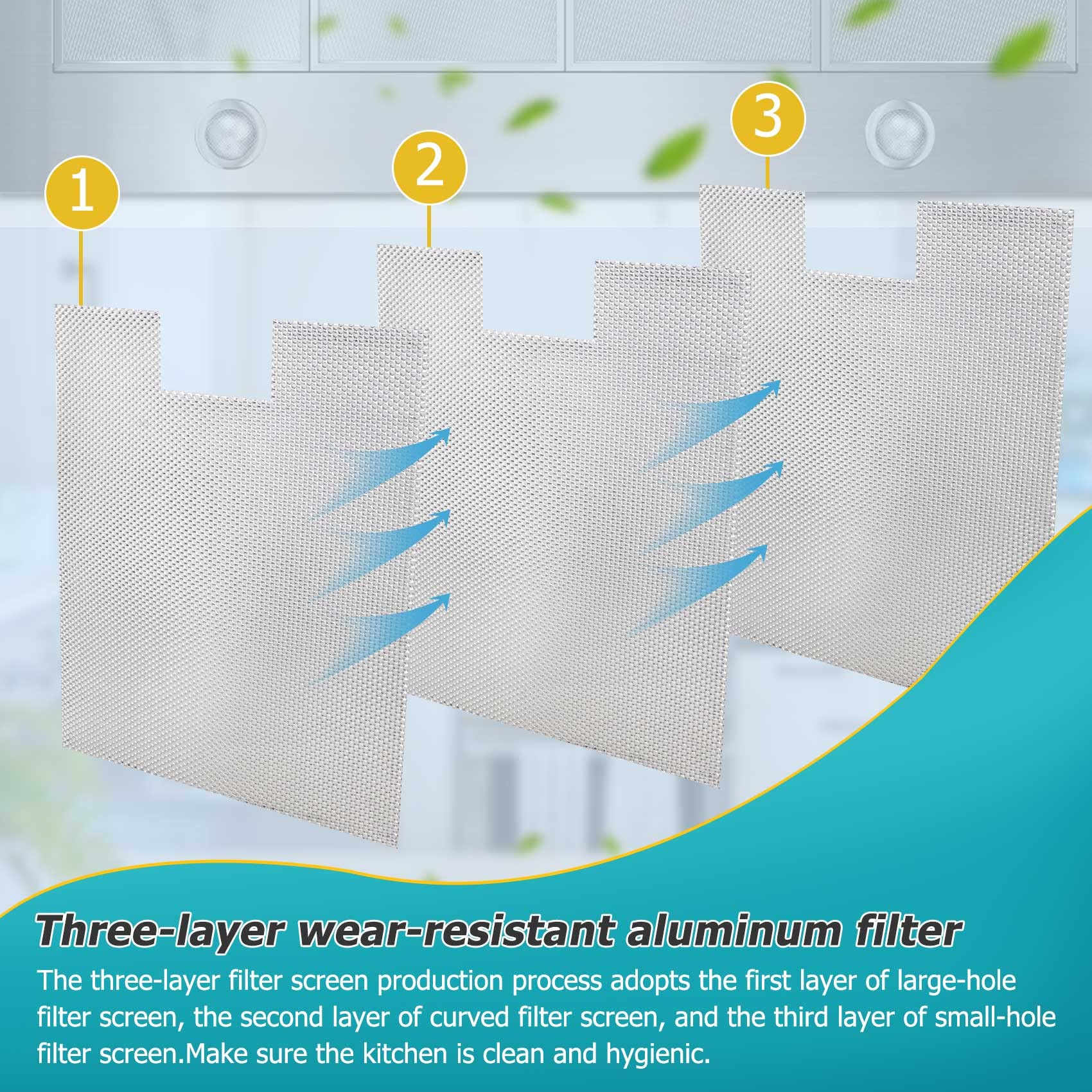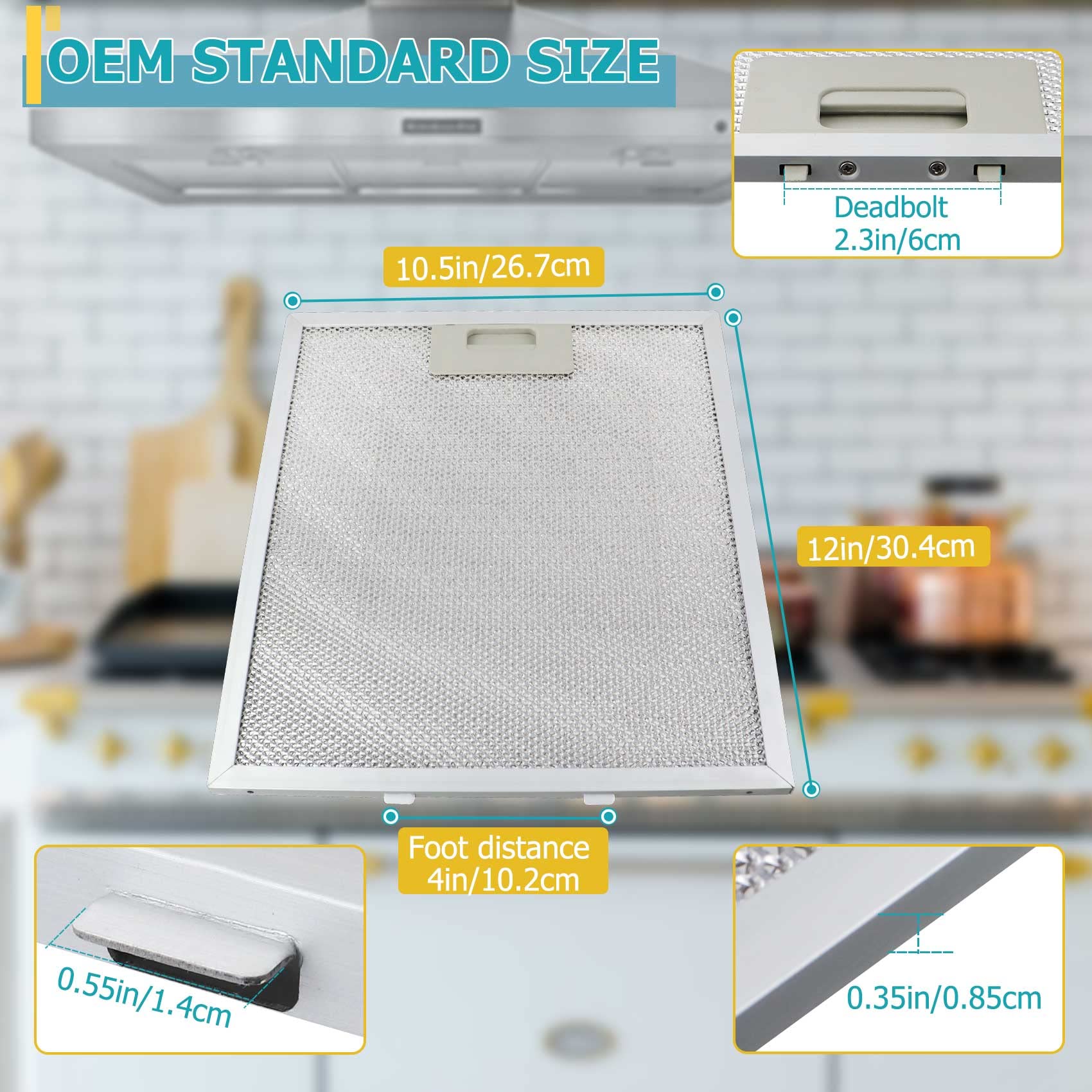 W10169961A Filtro de grasa para campana extractora, 12 x 10.5 x 0.35 pulgadas (largo x ancho x alto) Tamaño estándar 3 capas de malla de aluminio filtro de campana extractora, 3 piezas