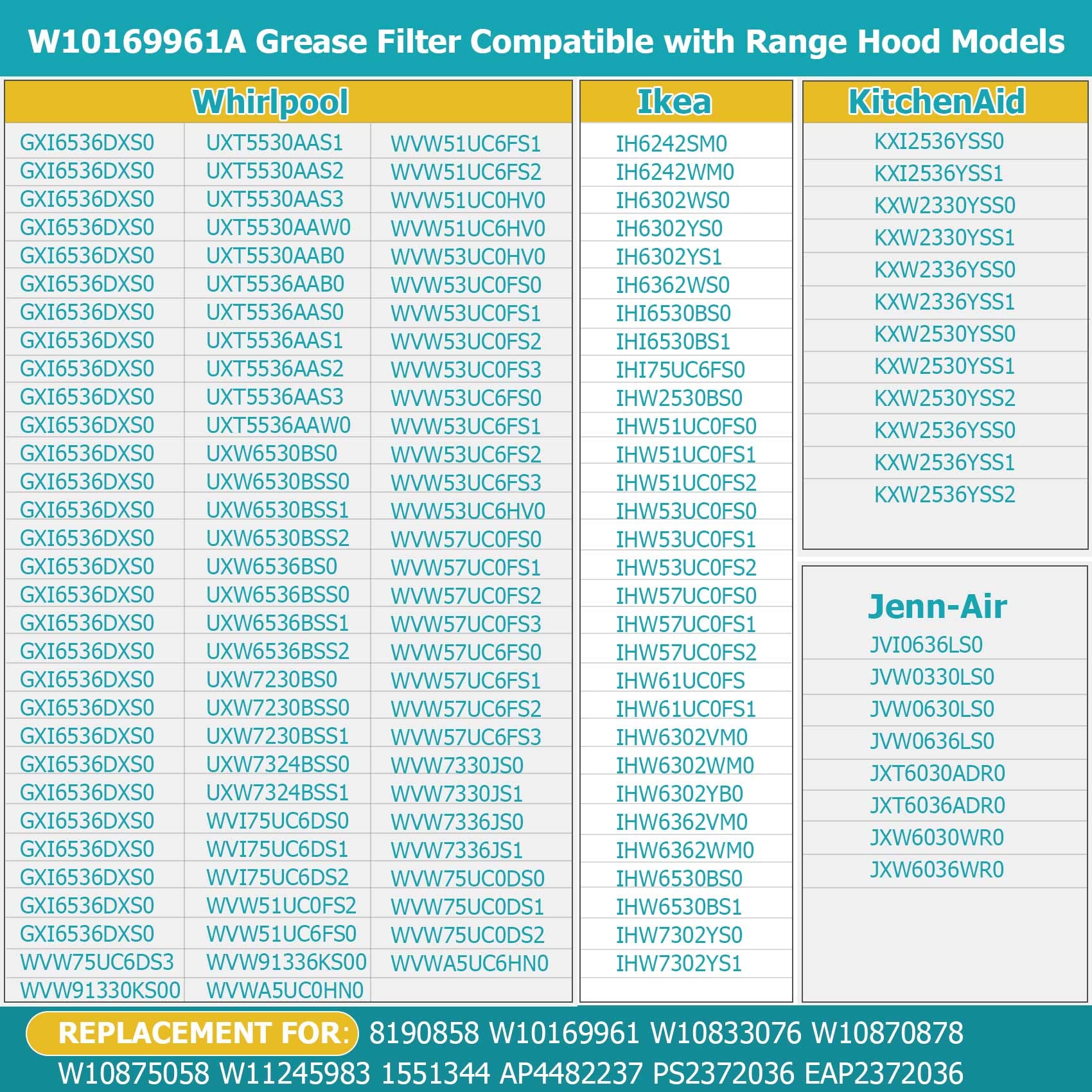 El filtro de campana W10169961A puede funcionar con Whirlpool: