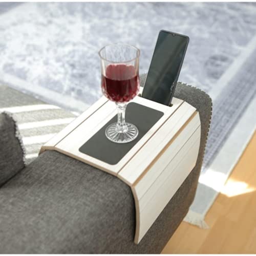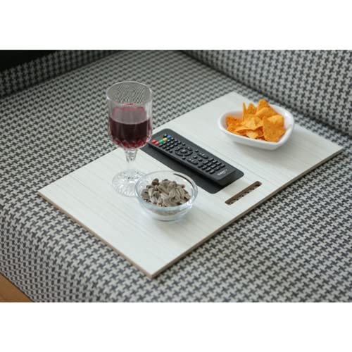Vassoio funzionale in legno per divano | Tavolino per braccioli per divano | Vassoio regolabile per braccioli per divano | Tavolino laterale per divano | Vassoio per braccioli per divano | Tavolino per braccioli per divano | Portabicchieri e portatelefono per divano (bianco)