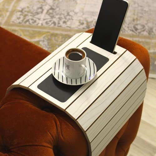 Vassoio funzionale in legno per divano | Tavolino per bracciolo divano | Vassoio regolabile per bracciolo divano | Tavolino laterale per divano