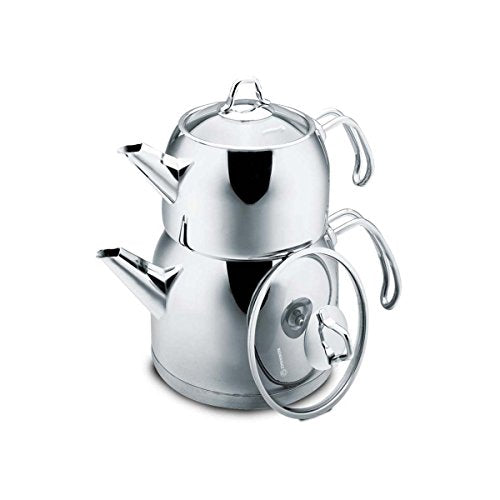 Korkmaz Provita Maxi Set di teiera turca capsulata con manico ergonomico, finitura lucida, 1,1 e 2 quarti