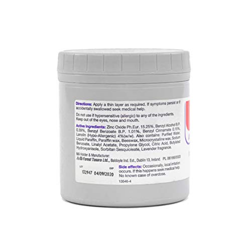 Ossido di zinco Ph. Eur. 15,25% Alcool benzilico BP 0,39% Benzoato di benzile BP 1,01% Cinnamato di benzile 0,15% Lanolina (ipoallergenica) 4% (P/P) Contiene anche: Acqua purificata, Paraffina liquida, Cera di paraffina, Cera d'api, Cera microcristallina, Benzoato di sodio, Acetato di linalile Glicole propilenico, Acido citrico, Idrossianisolo butilato, Sesquioleato di sorbitano, Fragranza di lavanda